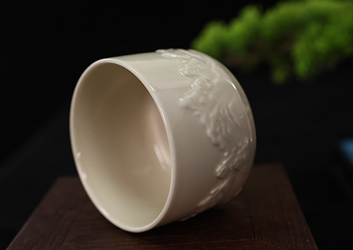 此大宋定窯主人杯杯名“山居”,即以精工雕刻之山居景色,呈現(xiàn)栩栩如生的浮雕效果。