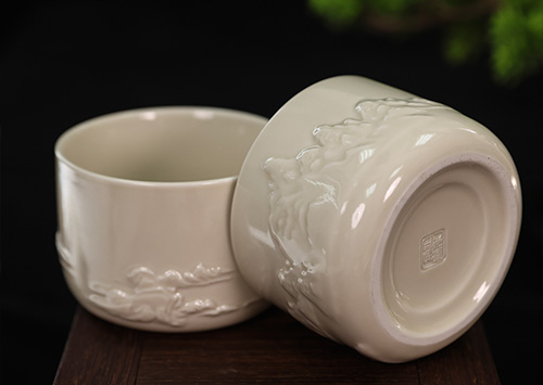 此大宋定窯主人杯杯名“山居”,即以精工雕刻之山居景色,呈現(xiàn)栩栩如生的浮雕效果。胎釉取材于古定窯遺址保護(hù)區(qū)范圍內(nèi),以傳統(tǒng)工藝與現(xiàn)代審美的融合,彰顯原礦胎釉的古風(fēng)之美。